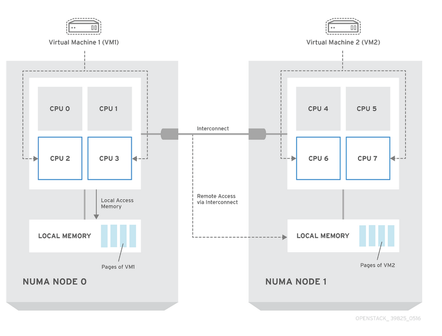 Some hardware vendors default to attaching all GPU cards to a single NUMA node in bare-metal configurations. While this setup can improve CPU and memory access efficiency in native environments, it is suboptimal for virtualization. In virtualized environments, this configuration introduces cross-NUMA access between CPU, memory, and GPU, which increases latency and degrades GPU performance due to inefficient dataplane communication. A more effective NUMA configuration for virtualization is to distribute GPUs evenly across NUMA nodes. This enables better alignment between VMs and underlying hardware resources. For best practices around configuration of Nova PCI passthrough, there are tutorials to help.
