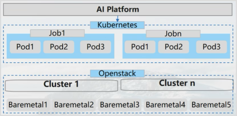 Kubernetes is the upper layer. Combined with the K8S platform as a computing power scheduling base. Add scheduling-related components to enhance AI scheduling capabilities.